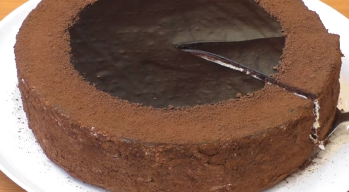 - Scoate tortul din frigider, îndepărtează cercul și întinde deasupra și prin părți crema rămasă. Mărunțește resturie rămase de la foile pentru tort într-un robot de bucătărie. Decărează tortul de jur împrejur cu firmiturile rămase mai devreme și servește-l cu plăcere. Poftă bună!